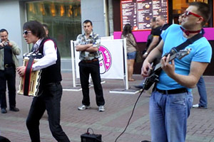 Для начала стоит сказать, что на десять исполнителей с коробками для пожертвований приходится только один достойный звания «уличного музыканта» – все же слишком часто под этот вид исполнительства маскируется обыкновенное попрошайничество со стороны нищих и расслабленных. Впрочем, в последние годы на московских улицах стало появляться все больше людей с приличными инструментами и аппаратурой, для которых музыка явно нечто большее, чем способ заработать на бутылку. Как выяснилось, среди таких профи далеко не каждый хочет идти на контакт – знакомое многим струнное трио из подземного перехода под Манежной площадью переполошилось только от одного предложения поговорить об их ремесле. Их можно понять – для некоторых музицирование в удачном месте становится основным источником дохода, который совсем не хочется терять. География таких узлов проста: большинство «точек» сосредоточено в центре, в районах скопления народа, неподалеку от станций метро. Хотя здесь у каждого коллектива свои предпочтения: кому-то нравится выступать исключительно на свежем воздухе, а кому подавай безупречную акустику подземного перехода-трубы. Мы постарались обойти самых достойных, и выяснилось, что уличная музыкальная жизнь ничуть не менее интересна, чем клубная.